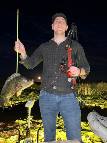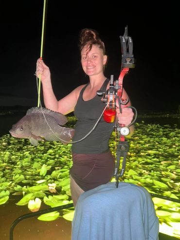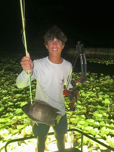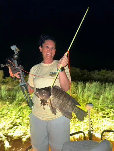 If interested in a very exciting time trying bow fishing or fish gigging contact to book a trip. All equipment needed is provided. Freshwater species include Tilapia, Catfish, Gar, bowfin. Salt Water includes sheepshead, stingray, black drum and flounder (while in season). You can keep what you get, and I will fillet for you. Price is $500 for 4 hours and covers 1-6 people on the boat. The 4 hrs. include time actually engaged in activities. Drive time to locations will not count against the 4-hour time. Day and Night tours available. Must provide own fishing license for bow fishing and gigging tours. Would recommend a night tour for better success rates in salt water.
